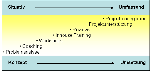 Jede Problemsituation, jede Krise, jede Herausforderung braucht eine individuelle Vorgehensweise und damit auch einen unterschiedlichen Ressourceneinsatz. Ihren Anforderungen entsprechend richten wir unsere Unterstützungsleistungen aus: